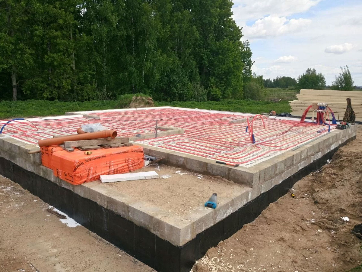 Конструкция финской плиты состоит из ленточного фундамента, внутри которой залита монолитная плита. Они отделены друг от друга слоем утеплителя. На бетонной плите также уложен слой утеплителя. Этот вид фундамента обладает рядом преимуществ: