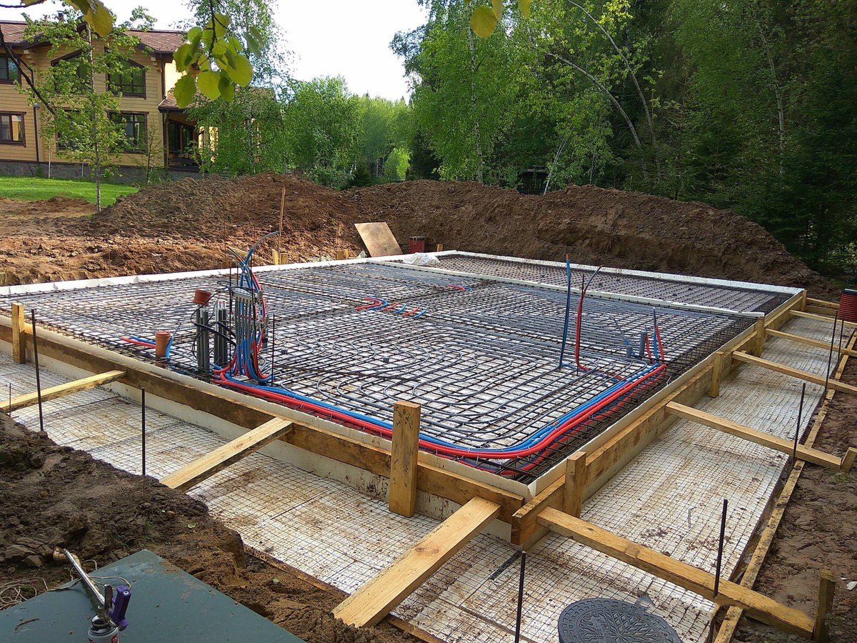 Для строительства финской плиты снимают плодородный слой почвы, копают траншею и котлован так, чтобы уровень дна был одинаковым по всему периметру.